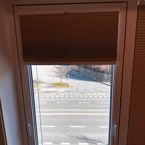 Selger 2 plissegardiner fra decosol, lysdempende i grålig farge