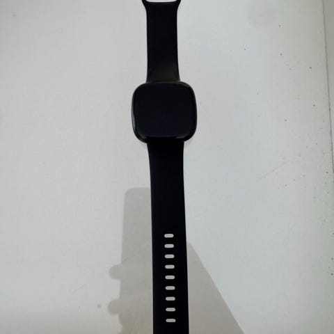 Fitbit Versa 3 smartklokke med svart reim. Klokken inkluderer lader. Passer for daglig bruk og aktivitetssporing.