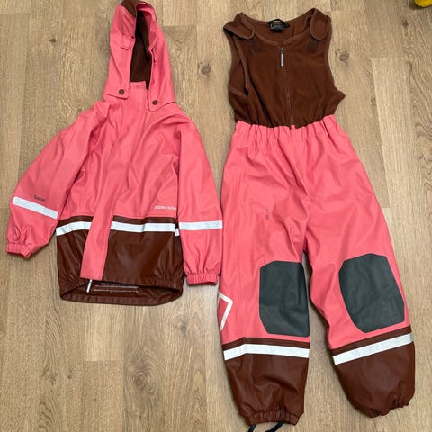 Helly Hansen barneklær regnsett i størrelse 122, flerfarget design. Passer for både gutter og jenter. Regnsettet består av jakke og bukse med elastiske mansjetter og reflekser for økt synlighet. Materialet er vanntett og egnet for bruk i vått vær.