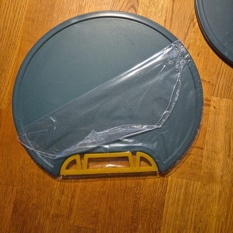 Skjærefjøl i tre, 35 x 20 cm med solid hempe for å henge på vegg. Er lite brukt, men har en svak kromning, se bilde fra enden. Selges derfor til kun kr 75