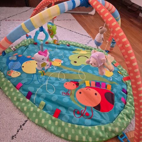 Selger pent brukt babygym i farger som baby vil elske. 4 leker, speil (godt brukt) og musikkbrett følger med. Alt er vasket og klart til bruk. Kan hentes på Kampen.