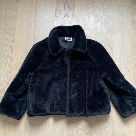 Ella&il Kåpe i størrelse XL, fargen svart. Jakken er designet for kvinner og har en myk tekstur som gir varme og komfort. Fuskepels. super til både festkjolen og casual