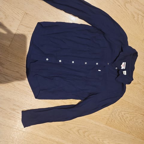 Levi's skjorte i mørke blå farge, størrelse M for kvinner. Laget av denim materiale, med knappelukking foran og brystlommer med klaff og knapp. Langermet design med klassisk krage.