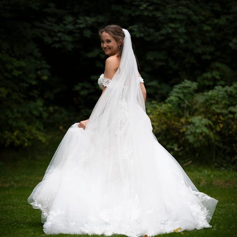 Brudekjole fra Morilee, størrelse M. Kjolen ser like vakker ut som før eg brukte den på bryllaupsdagen.