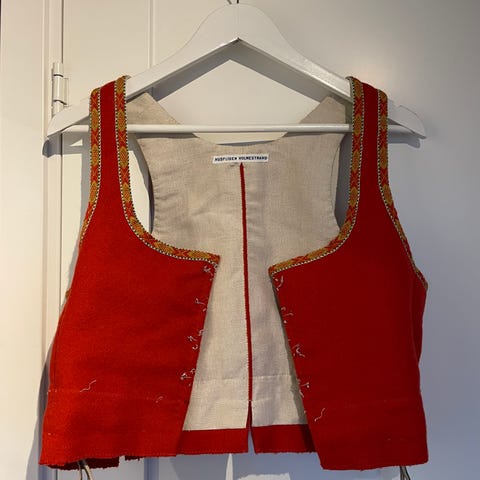 Rød vest til Vestfoldbunad selges, den er pen og hel, brukt få ganger.