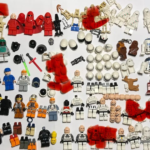 LEGO Star Wars minifigurer fra ulike utgåtte og eksisterende sett fra Star Wars-universet.
