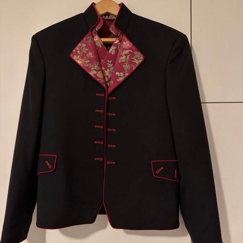 Pris jakke, bukse, vest uten sølv, skjorta og tilbehør kr. 24000 kr.