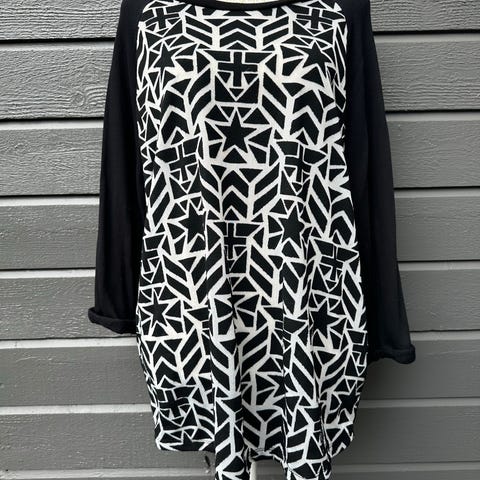 Cream genser i beige farge, størrelse L for dame. Genseren har et mønster på forsiden og er laget av et mykt materiale. Langermet design med rund hals og dekorative detaljer nederst.