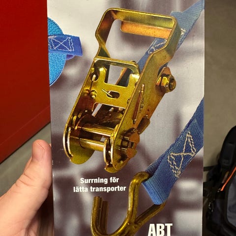 Spennenhet og 2 stykk spennbånd på 8 meter , bredde 5 cm .