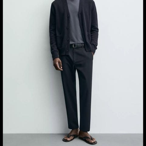 Trousers with a regular fit. Elastic waistband. Front pockets and detail with welt back pockets with button. Front fastening with zipper and button.