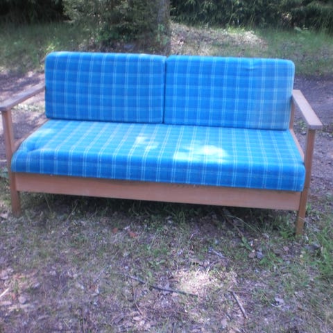 Retro sovesofa i ullstoff.