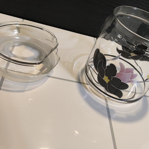 Krukkene er hele og pene. En har opprinnelig etikett. Høyde 15, diameter 7 cm.