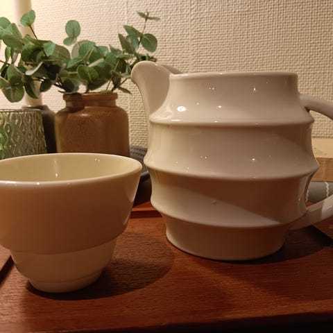 Arabia te sett med skåler og sukkerbolle i keramikk,te kanne og noe tekopper også. Fargekombinasjon i hvit og brun. Sett bestående av en kaffekopp med hank, en skål og en sukkerbolle. Passer til servering av kaffe og tilbehør.Selges samlet 400kr plus porto.Kan hentes på Tjøme.eller sendes