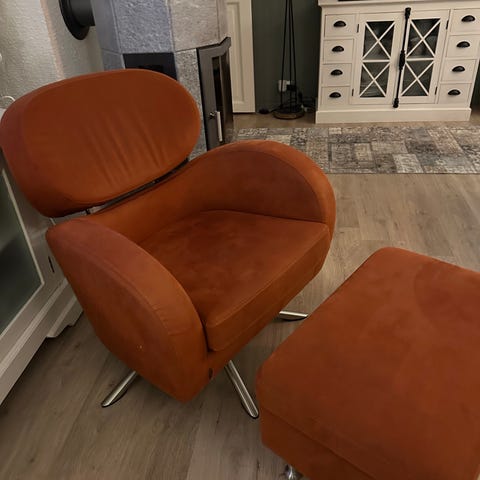 Pent brukt Sting stoler med sving funksjon fra Brunstad selges. 4000 kr pr stol. 7500 for begge. 24000 kr pr stol ny på Skeidar. Farge grå med sirkelmønster. Blanke metallben. God sittekomfort. Selges grunnen innkjøp av sovesofa i tv stua.