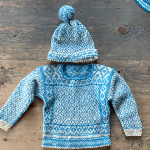 Strikket av min mormor da jeg var liten. Varm og god.