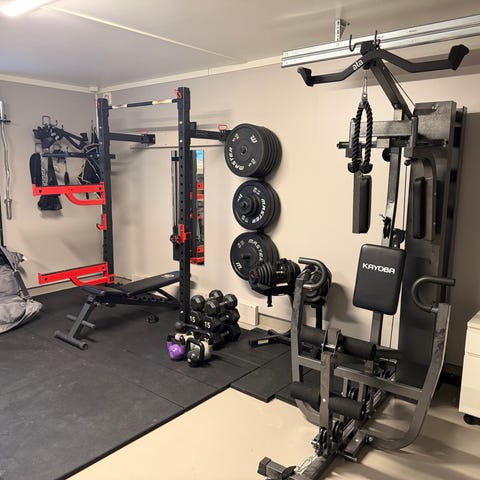 KOMPLETT hjemmegym selges - Manualer, kabelmaskin, pulldown/roer, rack, skiver++