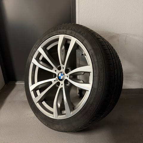 Her tilbys et komplett sett med originale 20 tommers BMW-felger (6883757), som har vært montert på en BMW X5.