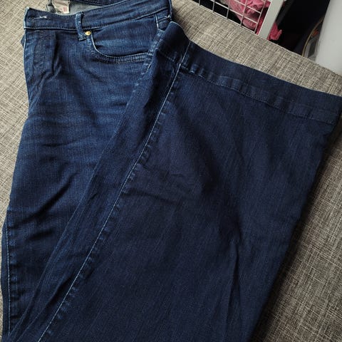 Ukjent bredbukse jeans i grå farge for kvinner. Størrelse M med midjemål W29. Laget i denimmateriale med vid passform.