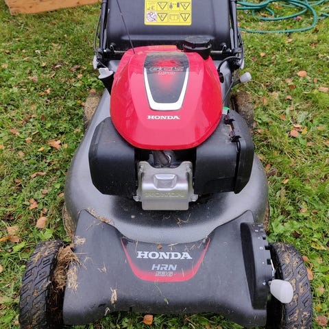 Honda sx Gressklipperen har en rød motor og metallchassis. Den er utstyrt med en bensinmotor og håndtak for manuell styring. Modellen er produsert i 1992.