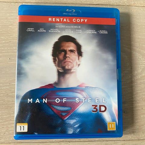 Man of Steel 3D Blu-ray film, action and adventure genre. Includes 3D viewing format. Suitable for ages 11 and above. Standard Blu-ray disc packaging.