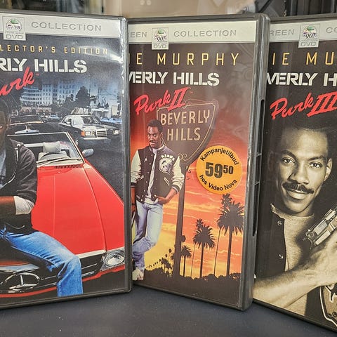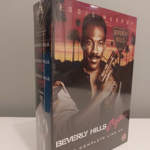 Beverly Hills Cop DVD, komplett serie med alle filmer i serien. Inneholder 15 års aldersgrense, språkvalg på engelsk, dansk, norsk og svensk. Total spilletid er 12 timer. Produktet er i original emballasje.