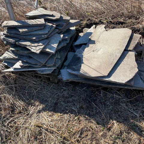 Knust takstein gies bort. Skulle brukes som fyllmasse men prosjektet ble aldri satt i gang.