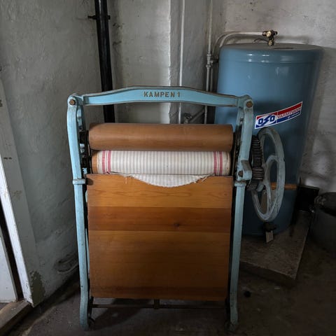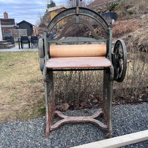 Gammel klesrulle som stod i kjelleren på huset vi kjøpte.