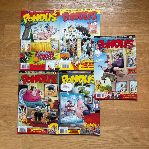 Pondus tegneseriehefter i diverse utgaver. Inneholder flere blader med varierende innhold og sider. Passer for samlere og lesere av tegneserier. 23 stk