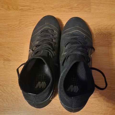 Nike F50 fotballsko i svart farge, størrelse 41. Laget med fiberskin-materiale for bedre passform og kontroll. Skoene har knotter under sålen for bruk på gressbaner. Brukt til fotballspill.