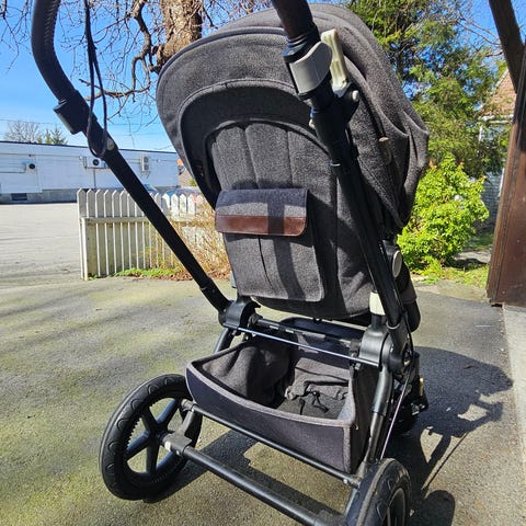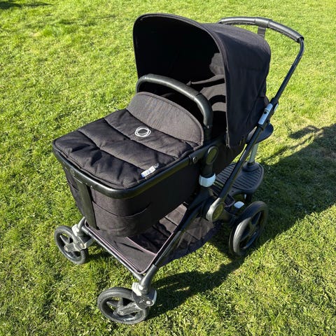 Svart. Låsen på forhjulene, som får dem til å kun gå rett frem, sluttet å virke tidlig i bruk, men det er ikke noe vi har savnet særlig.
