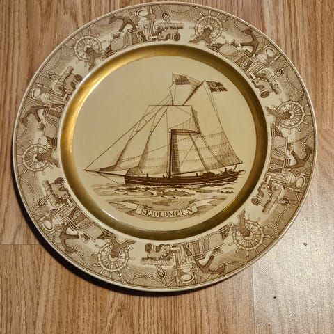 8 tallerkener med maritimt motiv. Figgjo "Norske Skuter" Porselen Ø 28 cm, som nye, kan henges