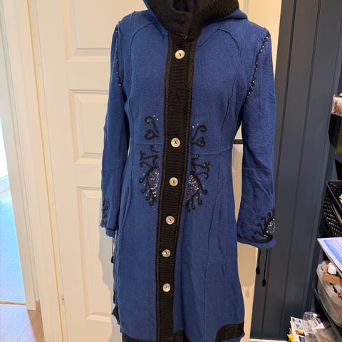 Pen blå innsving kåpe i ullblanding fra Noa NOA selges. Pen til hverdags og til fint.