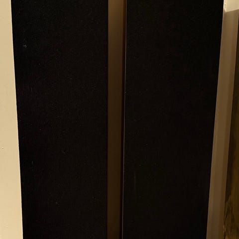 Høyttalerne har blitt behandlet meget pent og har ingen utvendige riper. Det følger med originale 'spikes' hvis man ønsker å heve høyttalerne opp fra gulvet.