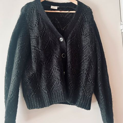 Ubrukt svart strikka jakke - S/M - i ullblanding selges kr 500. Kjempefin høstjakke.