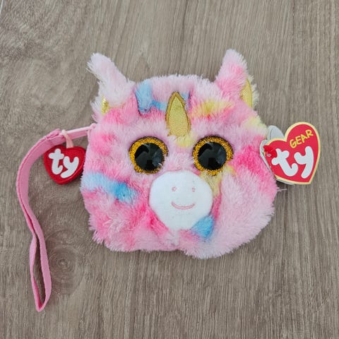 Jeg selger en søt liten lommebok fra TY. Den er i god stand, men bittelitt slitt på øynene. Dette er lite synlig, men jeg har prøvd å ta bilde av det for å vise.