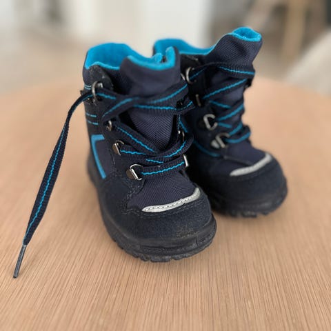 Støvlene er i blå og svart med fôret innside for ekstra varme og komfort.
