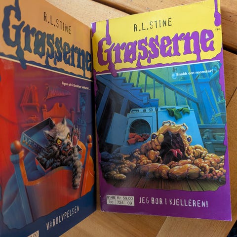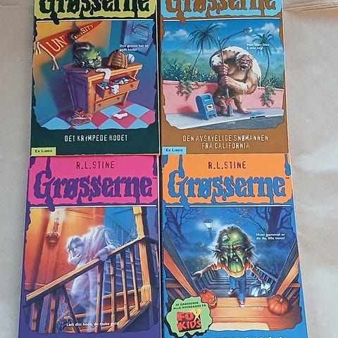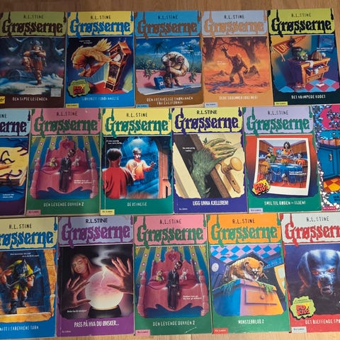 Jeg selger min gamle samling med Grøsserne-bøker (Goosebumps på engelsk) av R. L. Stine. Bøkene er for det meste i god stand, men de har i sin tid blitt lest flittig, så enkelte er i litt dårligere forfatning enn andre.