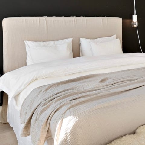 Kremhvitt trekk til sengegavl på 180 cm. Trekkes enkelt over. 1799,- nypris. Kjøpt ny fra tise nylig, men fargen ble feil til veggen. Superfin ellers, både materiale og fargen. Se to siste bilder for farge irl, de to første er fra Ellos. Brukt få ganger.