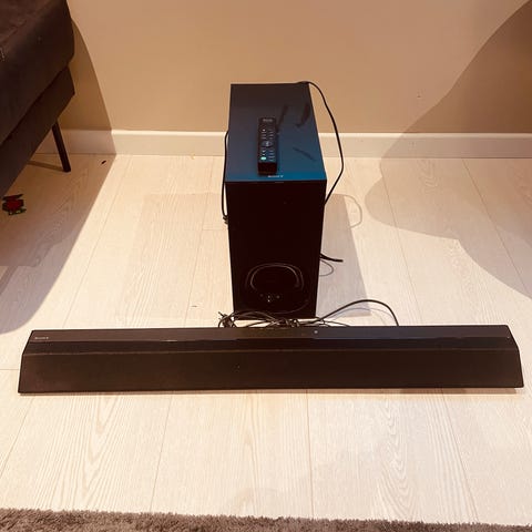 medfølger: Soundbar , Subwoofer , 2 x Speakers , fjernkontroll, strøm ledning