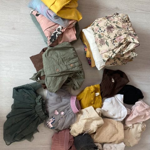 Klærne er røft brukt siden vi også brukte det i barnehagen. Har tatt mye bilder av klærne, så det skal komme frem ifht tilstand.