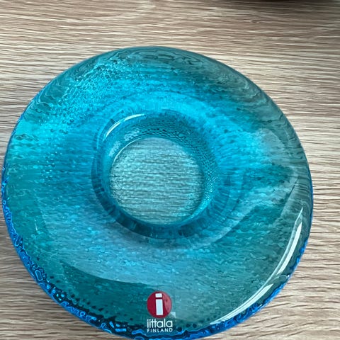 Iittala glass telysestake i grønn farge. Laget av klart og grønt glass, rund form med tykk kant. Diameter ca. 9 cm.