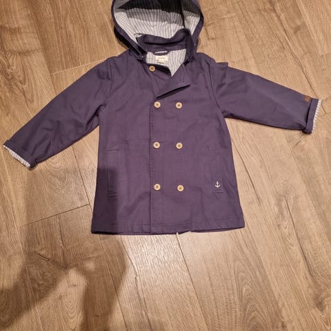 Fin og skjønn jakke fra Newbie i str 110. Tåler litt vind og vær. Litt romslig i str kanskje. Pent brukt.