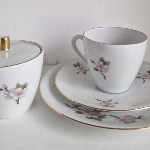 Kaffeservice, frokostservice, service, kopper, tallerken, tallerkener, vintage, retro, cottage core