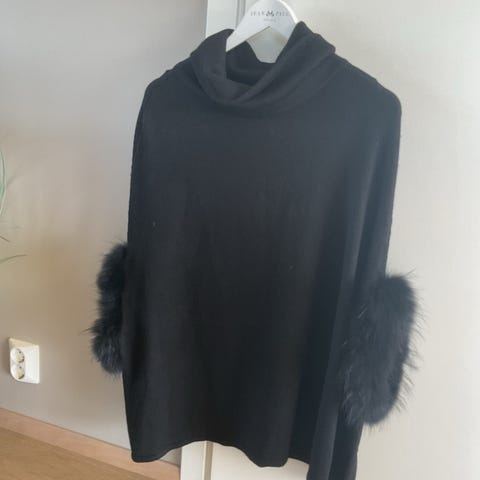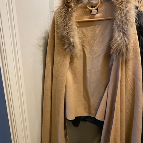 Grå 100% ull Sjal med Racoon pels. Ingen skader. Som ny. Ny pris er NOK 2.499,-