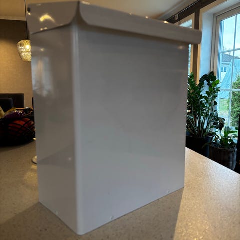 Klistremerke som dekker postkassen, med plass for navn
