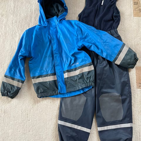 Pent brukt regnsett (foret). Reparert hull i baken, og de nederste stroppene er røket(lett å fikse)