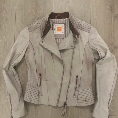 Boss Orange, lys grå skinnjakke