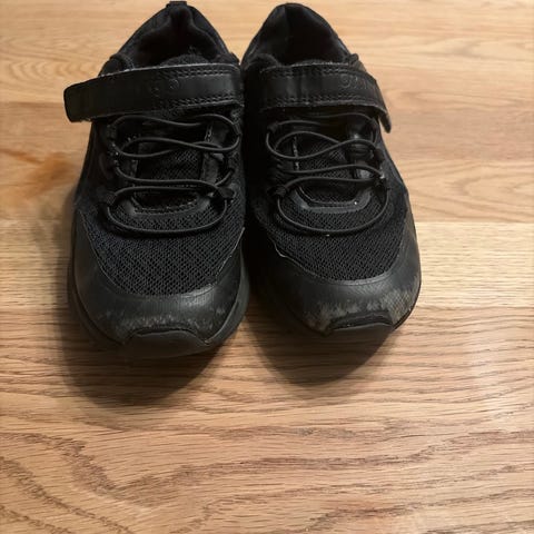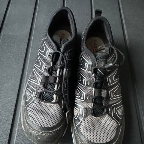 Nesten ubrukte Okaki sko selges. Sorte, vannavstøtende. Tåler mye.
