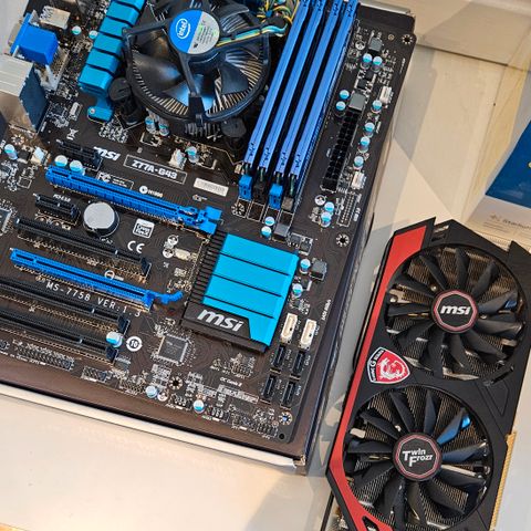Selger et MSI hovedkort med Intel i5 CPU, 16GB RAM og Coolermaster CPU-kjøler.