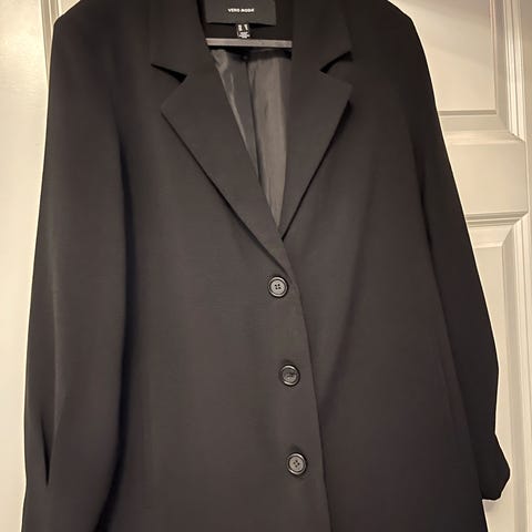Vero Moda jakke i mørk militærgrønn farge, størrelse 38 (liten i størrelse) ,Jakken har knappedetaljer foran og lommer. Materialet er ikke 50% ull, 20 % viskose og 30% polyester. Tøff jakke til både pent og hverdagsbruk.